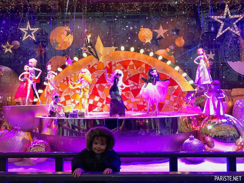 Bu yıl ben Printemps vitrinini daha çok beğendim. Sıra sıra vitrinlerde bildiğimiz yılbaşı süslemeleriyle kuklalardan harika mizansenler oluşturmuşlar. Her birinin önünde insanlar durup, uzun uzun vitrinleri seyrediyorlar. Cıvıl cıvıl, ışıl ışıl, her şey o kadar güzel ki. Üst saçak da ışık seli gibi zaten; bildiğimiz, klasik anlamda yılbaşı süsü görmek istiyorsanız, bu anlamda Printemps daha iyi sanki. Tabii vitrin süslemeleri sadece bu dev mağazalarla sınırlı değil. Paris'te, neredeyse tüm mağaza ve dükkanlarda Noel süslemeleri yapmak, ışıl ışıl bir dekorasyonla hayata neşe katmak bir gelenek. Öyle ki, bizim mahalledeki emlakçı vitrini bile her yıl Noel Baba, kar, tren yolu konseptiyle oyuncaklı bir hale bürünüyor.