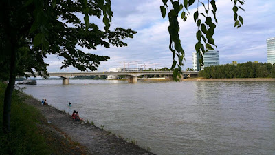 Işıklardan da anlaşılacağı üzere karşı kıyıdaki Slovakya şehri daha büyük ve canlı. Eşim akşam yemeğini orada yemeği teklif ediyor.