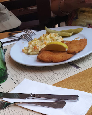 Şnitzel yemek için çok uğraştık ama pişirenler bize pek yardımcı olmak istemedi. Galiba sadece tavuk ve domuzdan yapıyorlarmış. Biz de yandaki yerde karar kıldık. Orada da bir Türk genci servis yapıyordu.