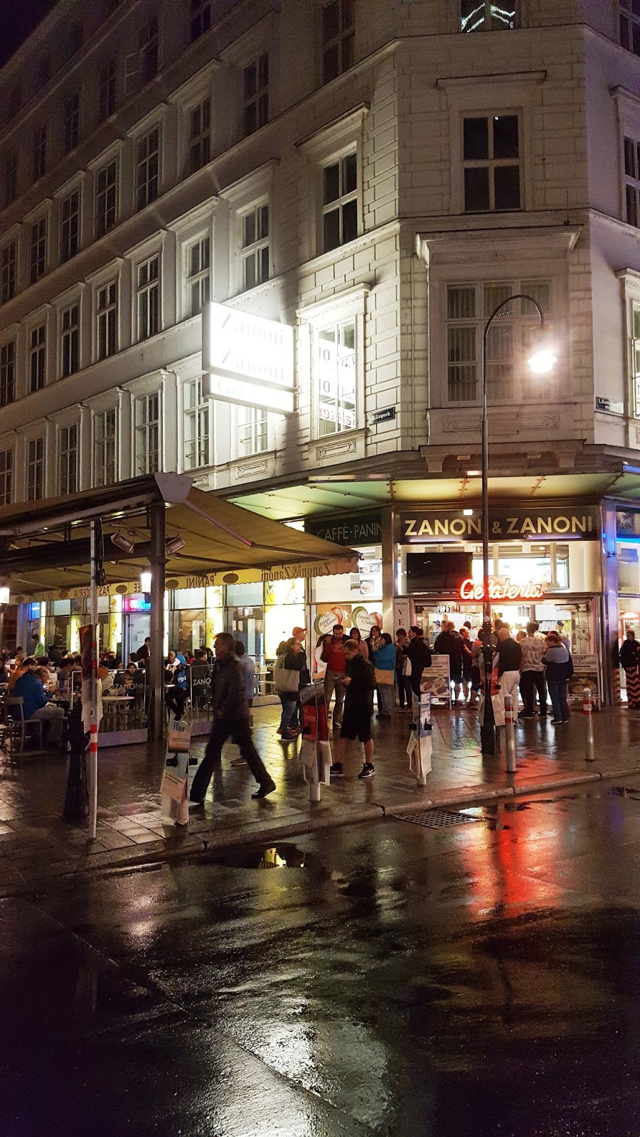 Meşhur Hoher Marckt Saatinin yakınlarında popüler bir kafe var: Cafe Zanoni Zanoni. Kendimizi oraya attık. Hava hala sıcak ve yukarıdan soğuk hava üfleyen bir sistemleri var (Bunu unutmayın, dönüşte bu konudan tekrar bahsedeceğim.).