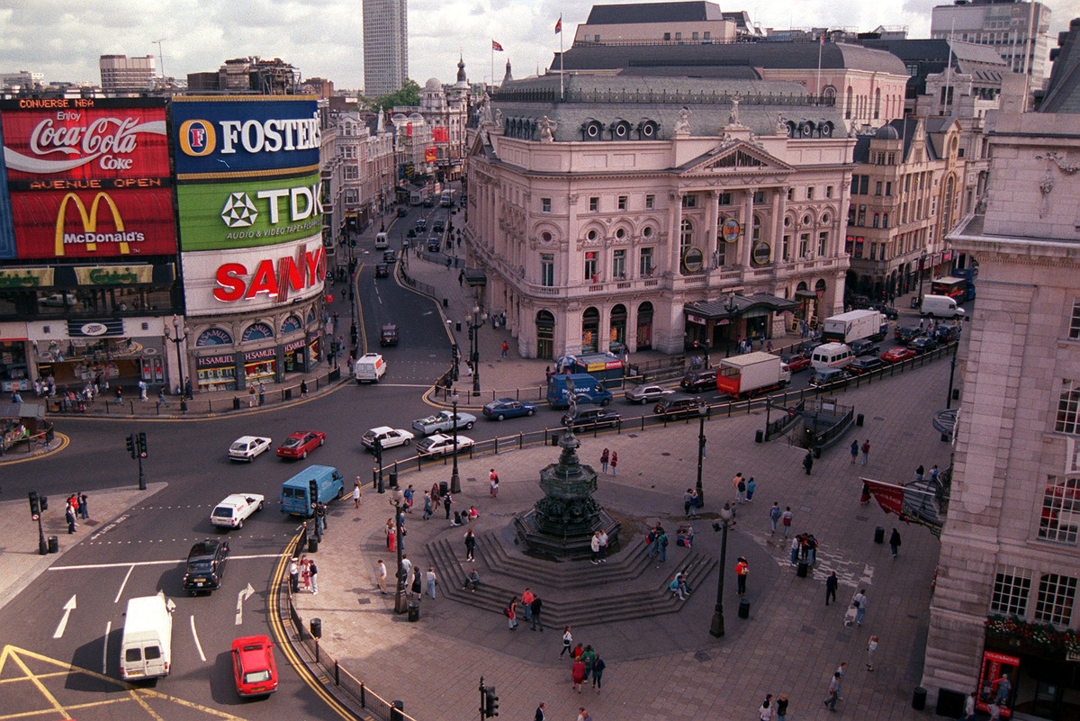 Piccadilly Circus Londra'nın en renkli ve hareketli noktalarından biri. Reklam panoları ve ışıklandırmaları ile New York şehrinin Times Meydanı ile karşılaştırılan bölge, Times Meydanı'ndan daha eski bir tarihe sahiptir. Meydanın merkezinde ki 'Tanrı Eros Heykeli', etrafında bulunan mağazaları ve cafeleri ile turistler için es geçilmemesi gereken bir nokta.