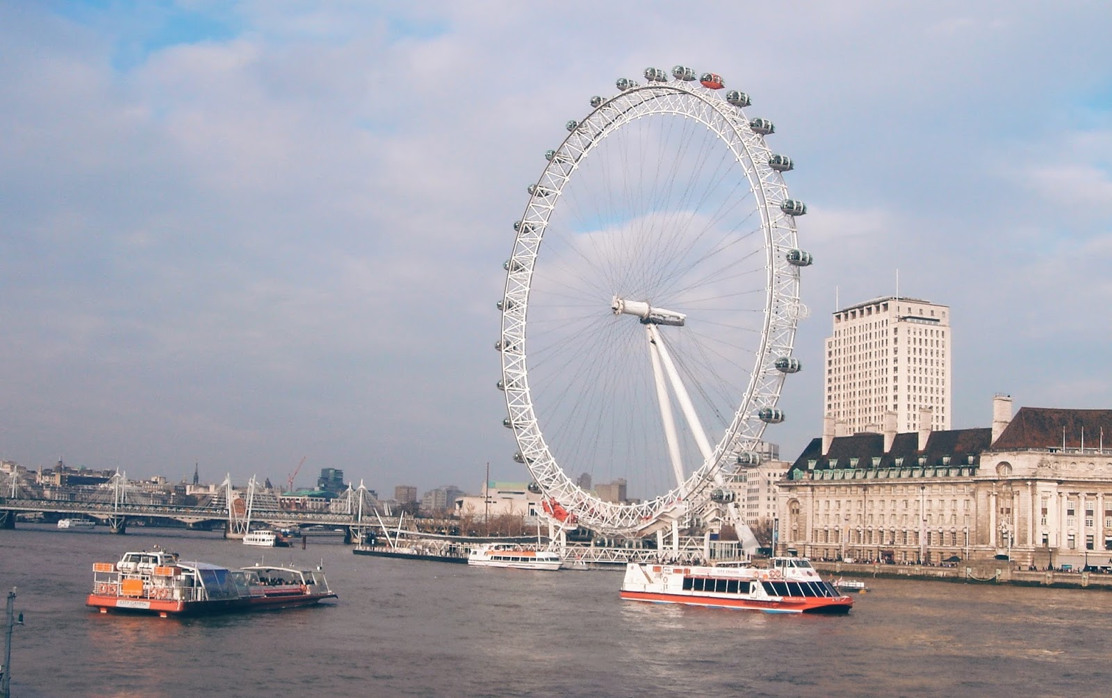 Hemen arka siluette London Eye var, Londra'nın tam ortasında yer alan dönme dolap, Londra^nın modern yüzü. Londra'yı her yönden açık havalarda 40 km kadar bir uzaklığı görebileceğiniz 32 cam kapsülden oluşan bir dönme dolap.